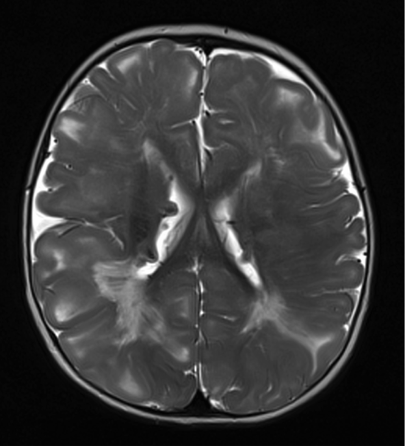 The image below is a T2-weighted image showing cortical tubers in the right and left frontal lobes (arrows).